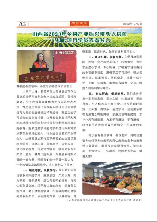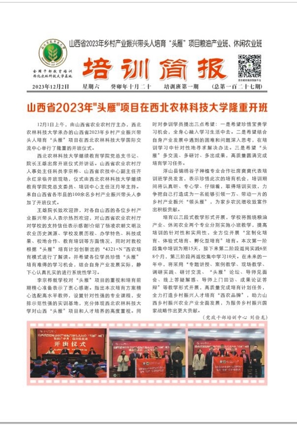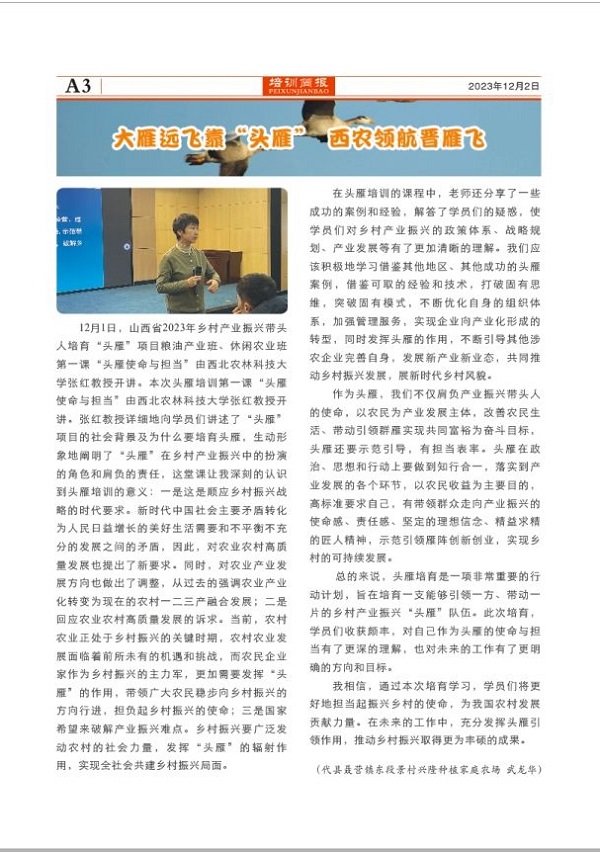 山西省2023年乡村产业振兴带头人培育“头雁”项目粮油产业班、休闲农业班培训简报