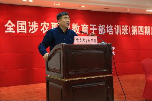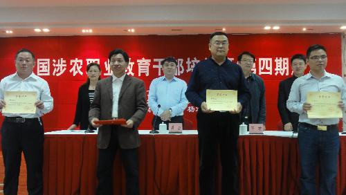 本期全国涉农职业教育干部培训班是教育部针对全国乡镇成人文化学校举办的首期培训,由教育部职成司副司长刘建同、教育部职成司城乡社会教育处调研员刘杰、全国农村成教专委会副秘书长姜明房、陕西省农业厅处长戴建昌、北京市教育职成处处长陈斌副、浙江省湖州市教育局副调研员谢益荣及我校专家教授,围绕“国家农村职业教育与成人教育示范县创建与发展”、“新型职业农民培育与农民教育培训发展概况”、“全国乡镇成人文化技术学校走向与政策”等方面为学员进行讲授。