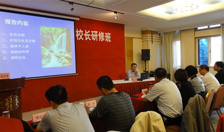 9月21日上午,甘肃省中等职业学校校长研修班在全国重点建设职教师资培养培训西北农林科技大学基地顺利开班,来自甘肃省各中职校校长、党委书记等48名学员将参加为期10天的培训。赵忠副书记围绕“生态文明与森林文化”主题,从生态文明、民俗与生态文明、森林与人类、森林的作用、森文化五个内容为培训班做了首场专题报告。