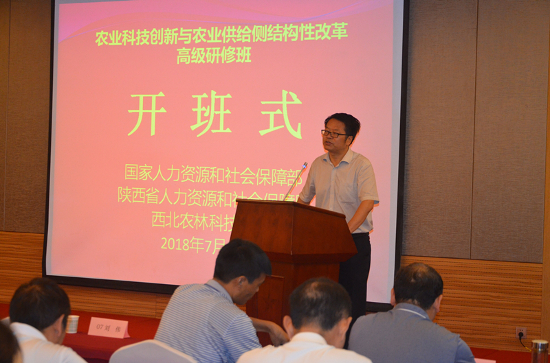 根据人力资源社会保障部办公厅《关于印发专业技术人才知识更新工程2018年高级研修项目计划的通知》,经国家人力资源和社会保障部审核同意,由陕西省人力资源和社会保障厅主办,国家级专业技术人员继续教育西北农林科技大学基地承办的“农业科技创新与农业供给侧结构性改革”国家级高级研修班于7月10日在我校顺利开班。来自安徽、河南、陕西、甘肃、新疆等省、市、自治区的各级农林系统中具有高级职称的专业技术人员共计70人参加了培训。